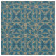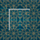 Flor fractal azul esfomeada com sotaques de ouro. No topo, partículas concêntricas irradiam energia como raios solares.