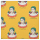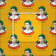 This vibrant fabric design celebrates the iconic artist Frida Kahlo with a lively, repeating pattern. Each motif features a stylized portrait of Frida, adorned with a green wreath and red roses, set above a banner boldly proclaiming "VIVA LA VIDA" (Long Live Life). Her authentic signature is elegantly integrated into each repetition. The entire pattern is set against a cheerful golden yellow background, creating a design that is both artistic and full of life, perfectly capturing Frida Kahlo's spirit.