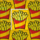 Ilustração de desenho animado de um pequeno pacote de batatas fritas. Personalize-o com o seu texto.