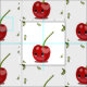 fruta de cerejeira vermelha kawaii em um padrão de fundo branco.