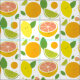 Tecido que apresenta um design de frutas de citros sorridentes (limões, limões, toranja e laranja). Escolha o tipo de tecido mais adequado para o seu projeto, selecione quantas jardas forem necessárias e adicione este tecido ao carrinho.