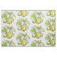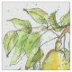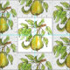 Um tecido elegante, decorado com um ouro de pera amadurecendo num ramo de folhas, esboçado com tinta sépia e aquarela em tons quentes de verde sobre um fundo acentuado de espuma.