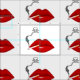 Lábios encarnados do batom que guardaram um cigarro com um sopro de fumo que aumenta acima dele em um crânio e em crossbones.