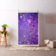 Fundo de faturas violetas com estrelas douradas e azuis. Fundo com estrelas.