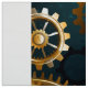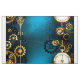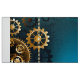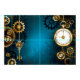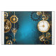 Turquesa, texturizada, fundo steampunk com latão e engrenagens douradas, chave prateada e relógio. Estilo Steampunk.