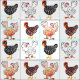 Quatro galinhas negras, brancas e castanhas, com ovos Imagem de fazenda