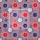 Almôndegas vermelhas, brancas e azuis marinho em fundo do estilo Turing de 3 cores.