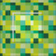 Características deste design um teste padrão pixelated temático do gamer dos pixéis verdes e amarelos (quadrados) que assemelham-se a 16 gráficos do bocado no video games popular.