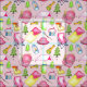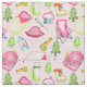 Este tecido temático de acampar é perfeito para meninas. As ilustrações em aquarelas de tendas, cadeiras de acampamento, lanternas, marshmallows e mais engrenagens para a campista feliz são colocadas sobre um fundo cor-de-rosa suave.