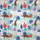 Tecido Gatos-da-selva com flores e folhas