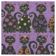 Tecido Gatos negros giros no padrão de Halloween roxo