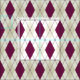 Este tecido geométrico moderno apresenta um padrão argyle colorido em bege claro e roxo.