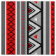 O tecido em do sudoeste/asteca inspirou, listras geométricas modernas - vermelho rico do tomate e máscaras de cinzento/cinza com acentos preto e branco