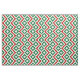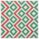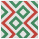 O tecido à moda caracteriza um teste padrão corajoso, geométrico do verde, o branco e o vermelho do meandro. O design decorativo original é perfeito para projetos do Natal. Os diamantes verdes com centros brancos são cercados pelos meandro brancos que dobram em torno deles. Os ziguezagues vermelhos separam os trajetos do enrolamento e os diamantes brancos do offset.