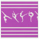 Tecido da ginástica em um teste padrão listrado roxo e branco com silhuetas do gymnast!