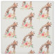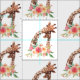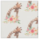 Tecido com um desenho fofo em aquarelas de uma mãe e girafa bebê. A girafa-mãe está descansando a cabeça sobre a girafa do bebê, amorosa e adorável. Bonito buquê rosa, amarelo, verde, de flor de aquarela colocado debaixo deste par de queridos.