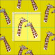 Ilustração de duas girafas longas e felizes. As girafas foram esboçadas em uma viagem ao zoológico de Londres. O material tem fundo amarelo. Obrigados para ver as minhas designs.