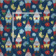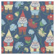 Tecido Gnomos de Jardim com Flores Marinho Azul Padrão