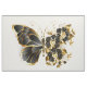 Gold flower butterfly with black jewelry orchid, decorated with gold leaves on white background.
