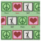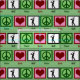 Tecido verde com sinais de paz, corações e golfistas. presente de excelente para fazer itens de golfe.