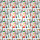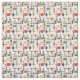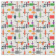 Este tecido tem um design moderno século médio de uma grande grade de linhas pretas horizontais e verticais com retângulos coloridos.