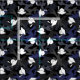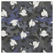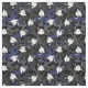 Tecido de graduação em camuflagem em campos de azul, carvão e preto e padrão de bonés de formatura brancos.