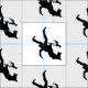 Preto e branco, moderno, padrão claro com um Grande Dane segurando um Pastor Alemão em suas patas.