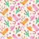 Tecido Groovy Cowgirl Boots and Hats Patterno with Cactus
