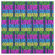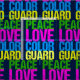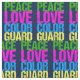 Um tecido bonito de guarda de cores para alguém que faz a bandeira girando com a banda de marchar na escola. A Guarda Peace Love Color é escrita em verde bonito, rosa quente, azul e amarelo neon.
