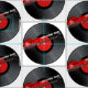 Obtenha a caverna do homem pronta com este rocha retro tecido projetado no vermelho, preto e branco. Caracteriza as palavras "gajo idoso do balancim," um desvanecimento para enegrecer a guitarra elétrica e um álbum gravado em um teste padrão da repetição.
