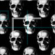 Escuro e adorável, nossos crânios góticos impressão a preto é excelente para seu próximo projeto gótico de criação ou costura. O impressão do crânio do esqueleto está colocado sobre um fundo preto escuro. Maravilhoso por colcha, moda, cosplay, decoração doméstica e muito mais. Excelente para o Dia das Bruxas ou Dia de Los Muertos dos projetos mortos!