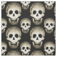 Halloween Rindo de crânios em um fundo preto. Projetado por Cheeky Witch® Visite a Loja de Tecidos de Bruxas Baratas para ver muitos tecidos divertidos para bruxas, wiccans e pagans astutos. Perfeito para roupas de varanda, vestidos, bolsas de corridas e tartes, almofadas e travesseiros, capas de rosto, máscaras e muitas mais criações mágicas. Não só para o Halloween!