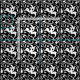 Reprodução digital de um padrão damasco Art Nouveau com uma textura tecida Ikat estriada - Branco sobre um fundo preto