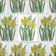 Concebido com base na ilustração floral de aquarelas de Farida Greenfield. Lindos e delicados daffodils amarelos flertando e dançando na primavera com folhagem verde ao seu redor e alguns botões prontos para florescer.