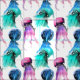 Ilustração colorida de águas-vivas submarinas da pintura original de waterocolor. Tema do oceano bonito