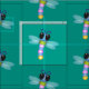 Tecido Ilustração de desenho animado de libélula, azul e