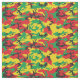 Tecido com padrão de camuflagem vermelho, amarelo, verde e preto