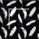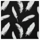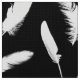 Impressão em um fundo preto - design gráfico da pena branca dos meios mistos das penas brancas, flutuando em um tecido de contraste do fundo