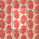 Tecido em um padrão de impressão de bloco, baseado em uma casca de couro cabeludo, em laranja de coral sobre um fundo de coral pastel