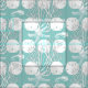 Tecido branco e verde-claro com um impressão de fundo. Dólares de areia branca, cavalos-marinhos, estrelas-do-mar e corais fazem um padrão náutico, sem costura. Altere a cor de fundo para qualquer, usando o botão "personalizá-la".