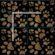 Design de pele-leopardo feito com manchas-leopardo marrons dentro a grande pata de gato imprime sobre um fundo de cor preta.