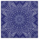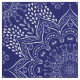 Tecido de mandioca azul Indigo com um elegante design de olá de lótus que é decorado com elementos brancos.