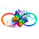 Tecido Infinidade brilhante com borboleta arco-íris