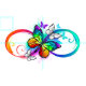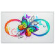 Multicor, brilho, símbolo de infinidade com arco-íris, monarca de borboleta detalhada. Borboleta-arco-íris. Arco-íris infinito.