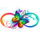 Multicor, brilho, símbolo de infinidade com arco-íris, monarca de borboleta detalhada. Borboleta-arco-íris. Arco-íris infinito.