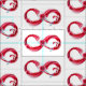 Símbolo infinito do fluxo contínuo de vinho tinto que entra em vidro de vidro sobre fundo branco.