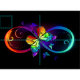 Tecido Infinidade vibrante com borboleta arco-íris a pret