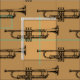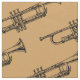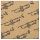 Um design do tecido que caracteriza um design bonito do kitsch de um instrumento musical de bronze da trombeta. Este design do divertimento está contra um fundo customisable da mostarda. O fundo pode ser mudado a uma outra cor do seu gosto.