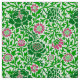 Tecido de um wallpaper William Morris design de flores em esmeraldas profundas e verdes limões, acentuado com cor-de-rosa fuchsia, contra um fundo verde pastel