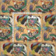 Tecido Jade Dragon e Dourada Phoenix brincando com uma pé